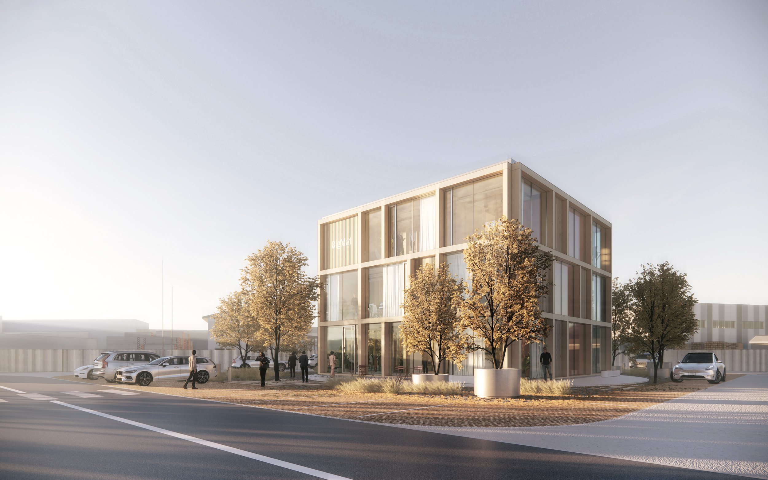 Drevo považujeme za perspektívny stavebný materiál s veľkým potenciálom pre Slovenské stavebníctvo. Bolo by škodou nemyslieť na to vo Zvolene, v centre vzdelávania v drevárskom priemysle. Preto, navrhujeme administratívnu budovu ako drevený skelet, prezentujúci Big Mat ako ekologicky a novátorsky zmýšľajúcu spoločnosť.